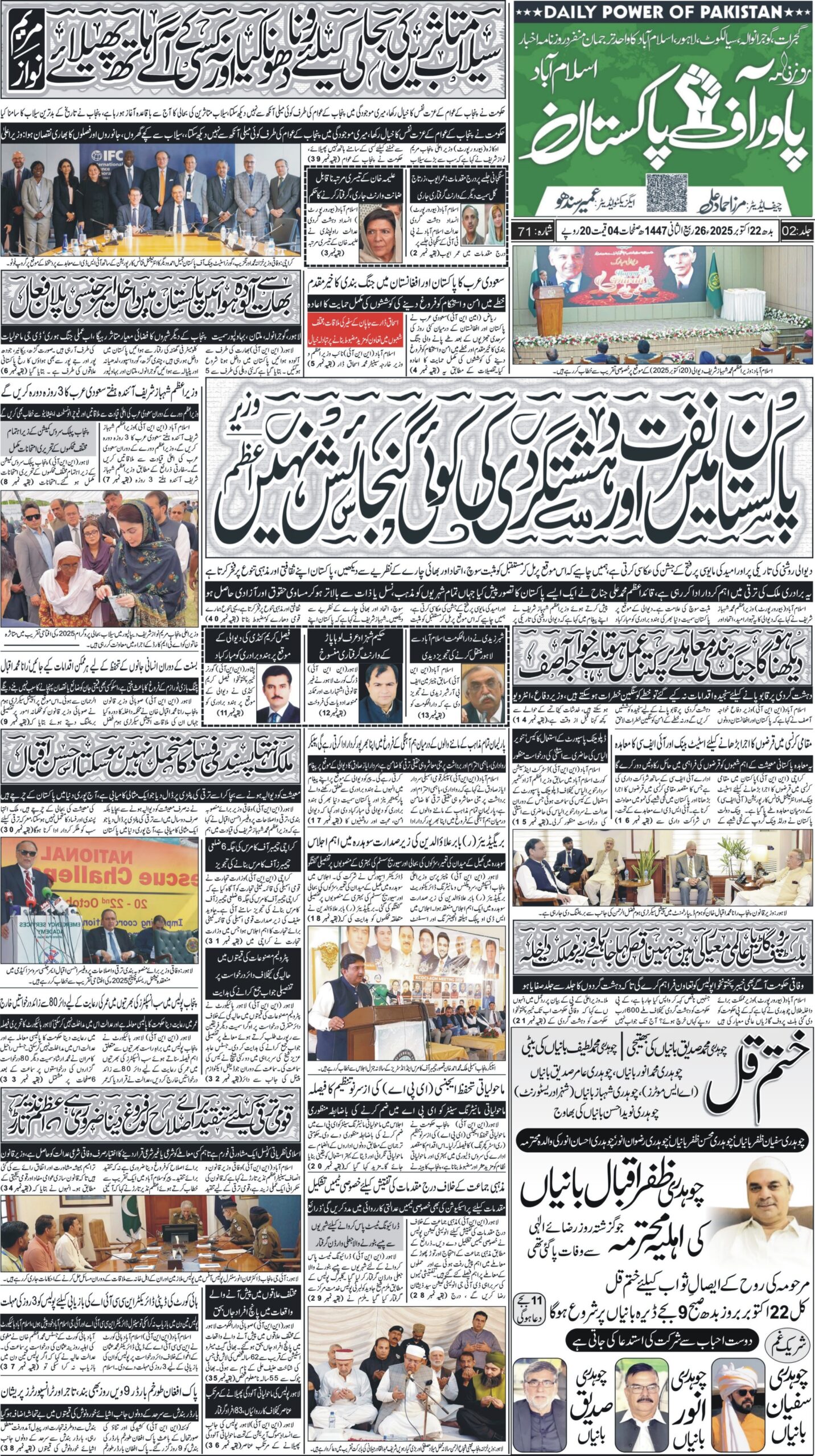 آج کا تازہ اخبار آج کااخبار dailypowerofpakistannewspaper@gmail.com اکتوبر 22, 2025 0 daily power of pakistan 22-10-2025