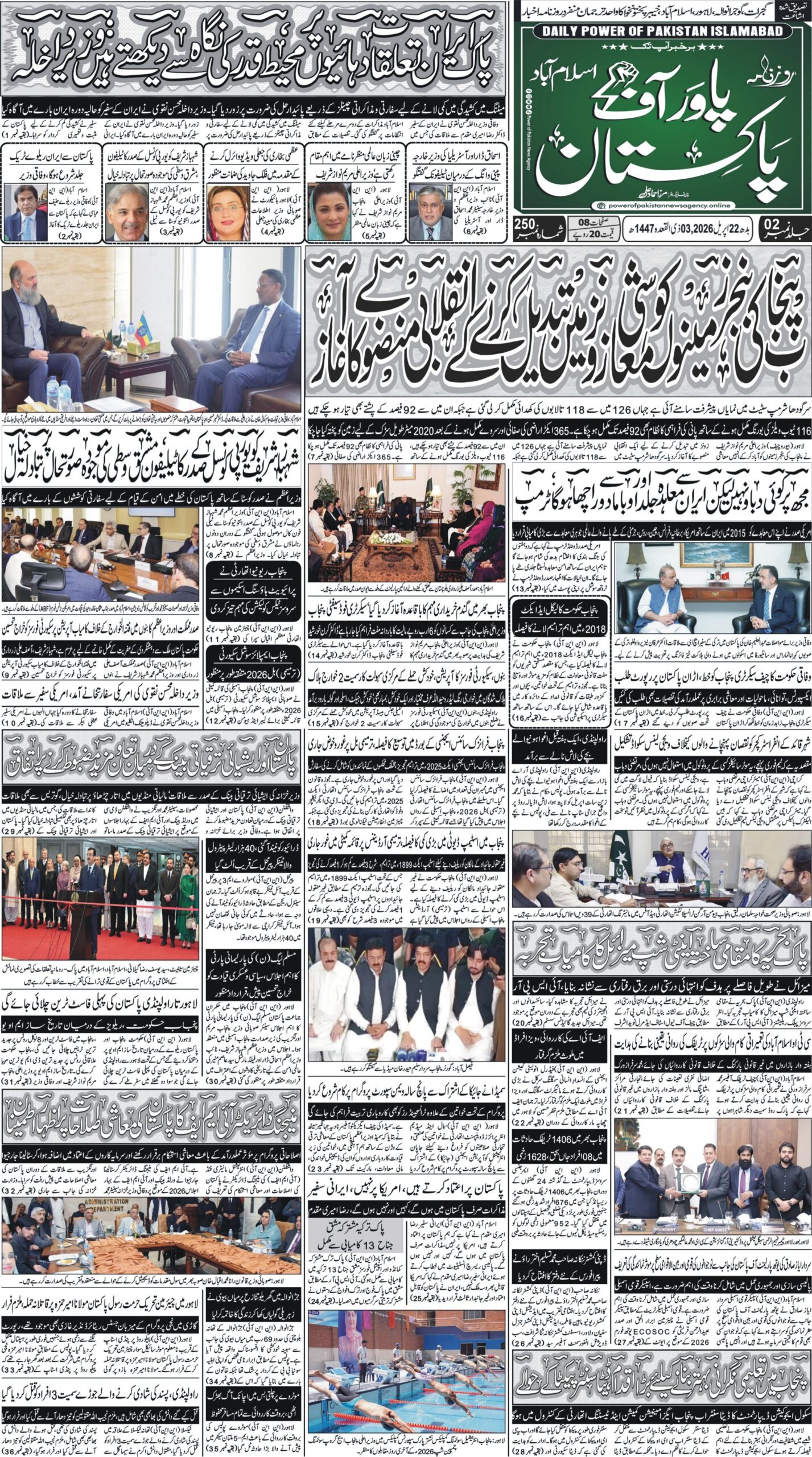 آج کا تازہ اخبار آج کا اخبار روزنامہ پاور آف پاکستان dailypowerofpakistannewspaper@gmail.com اپریل 20, 2026