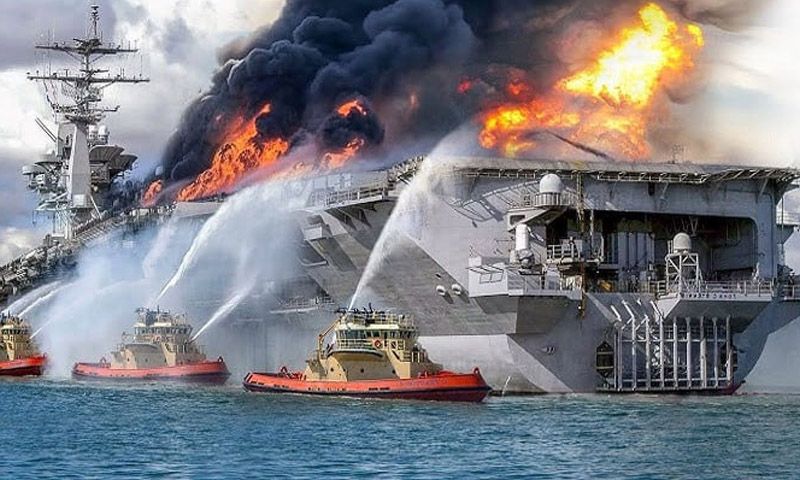 امریکی بحری بیڑے کے طیارہ بردار جہاز جیرالڈ فورڈ پر شدید آگ لگ گئی، جسے بجھانے میں تقریباً 30 گھنٹے صرف ہوئے، اس کا ذکر نیویارک ٹائمز اور دیگر امریکی اخبارات نے کیا ہے۔