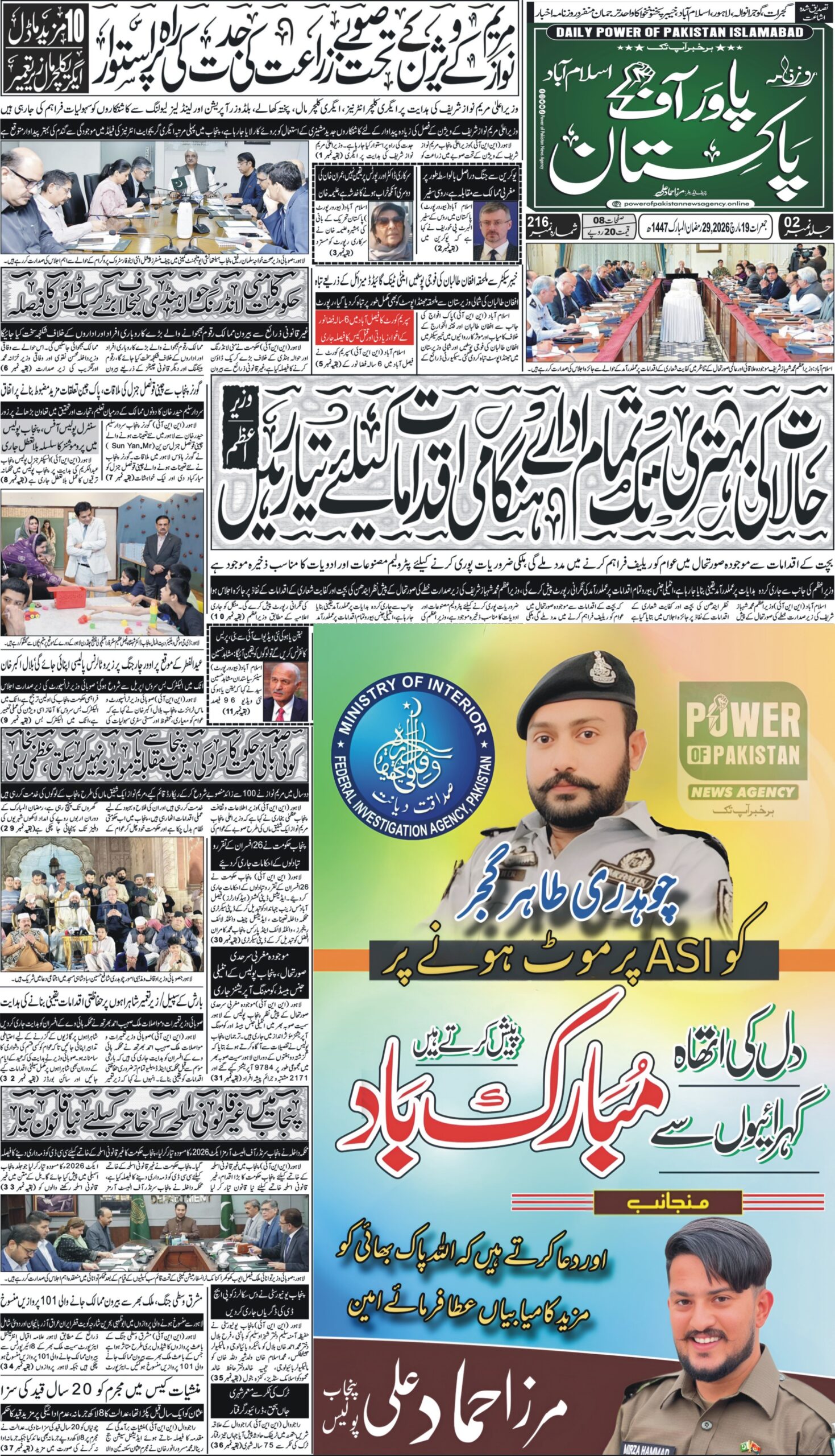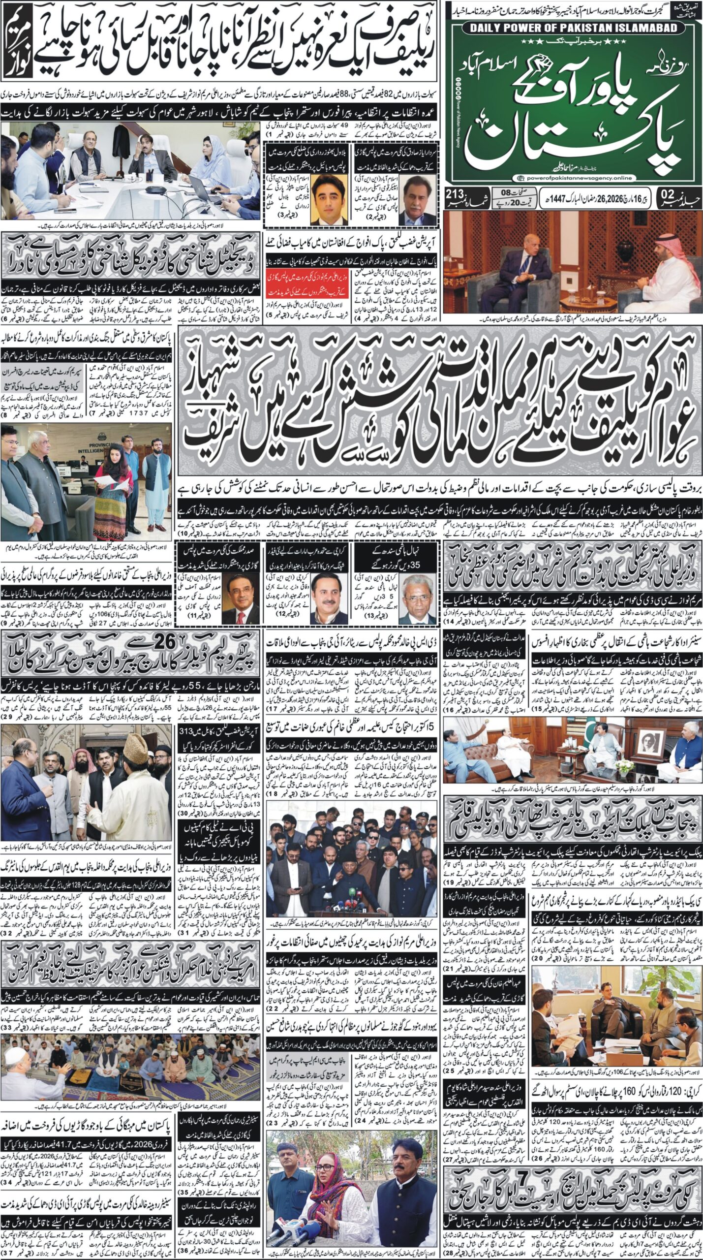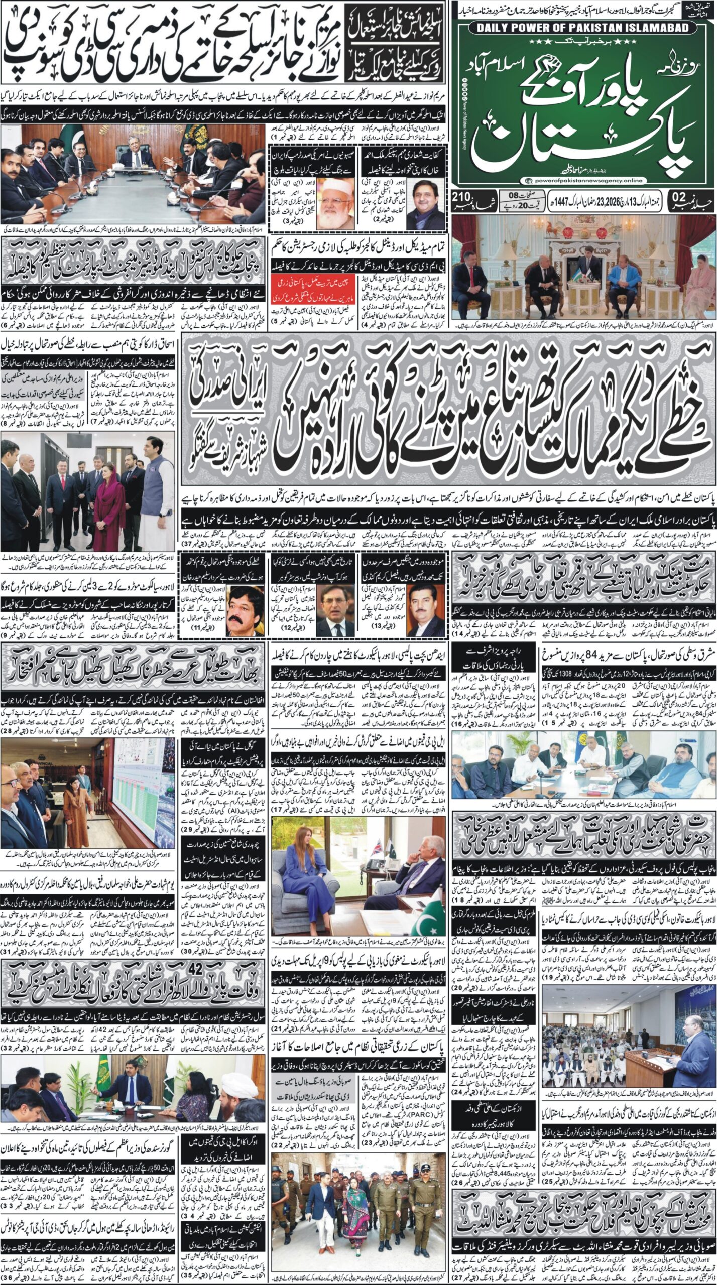 آج کا تازہ اخبار آج کی اشاعت خاص روزنامہ پاور آف پاکستان dailypowerofpakistannewspaper@gmail.com مارچ 27, 2026